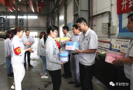 在空分設(shè)備廠車(chē)間內(nèi),曹小毛、王志峰、張石芳為各基層工會(huì)送上了小藥箱,把切好的西瓜送到工人師傅們手中。“天氣炎熱,大家多注意身體。”“來(lái),吃塊西瓜降降溫吧!”……豐富的藥箱,清涼的西瓜,溫馨的叮囑,讓奮戰(zhàn)在一線(xiàn)的干部職工們切身感受到了公司的殷切關(guān)懷。大家紛紛表示,要立足崗位,不忘初心,牢記使命,為公司年度生產(chǎn)任務(wù)目標(biāo)實(shí)現(xiàn)做貢獻(xiàn)。